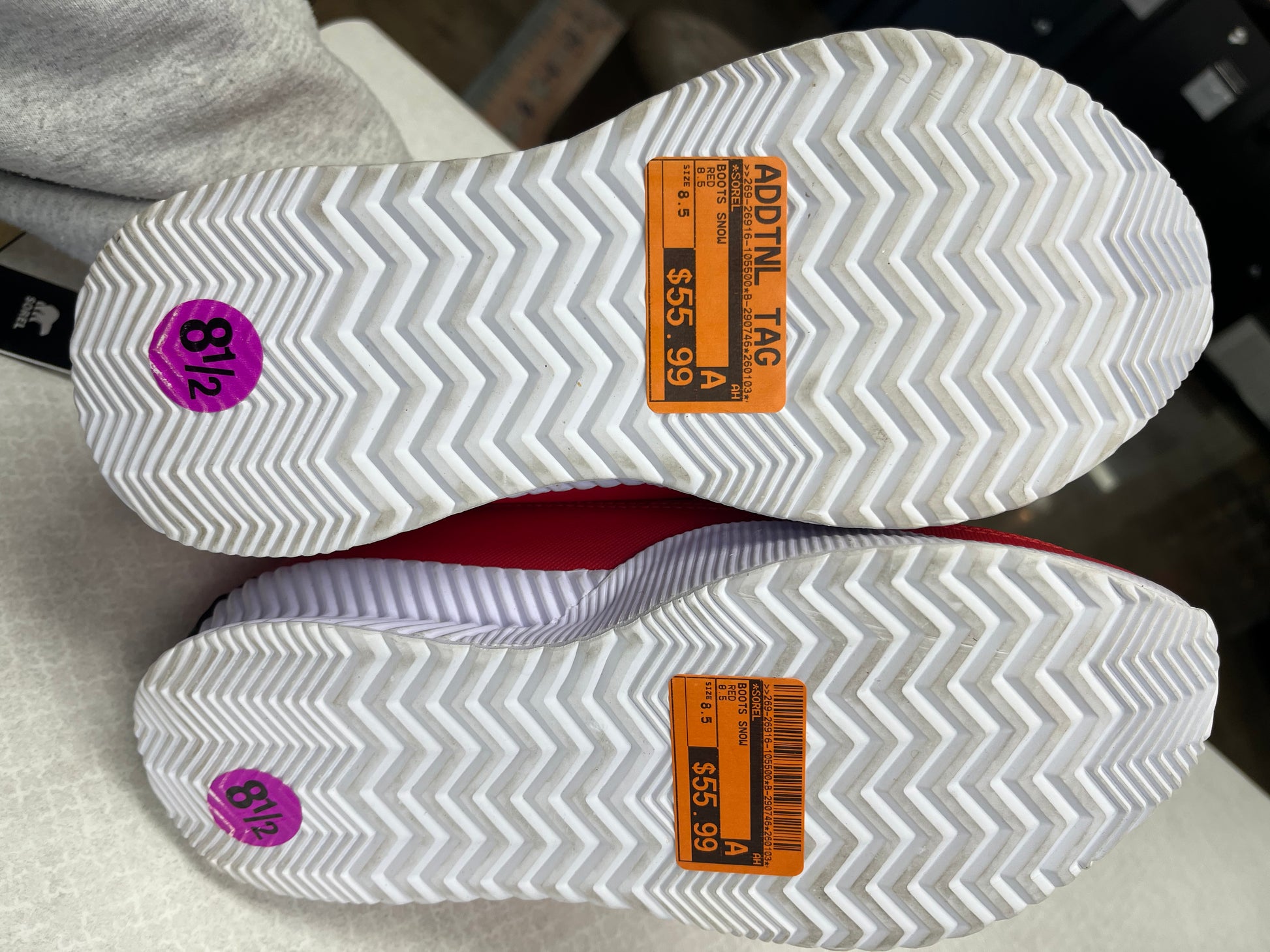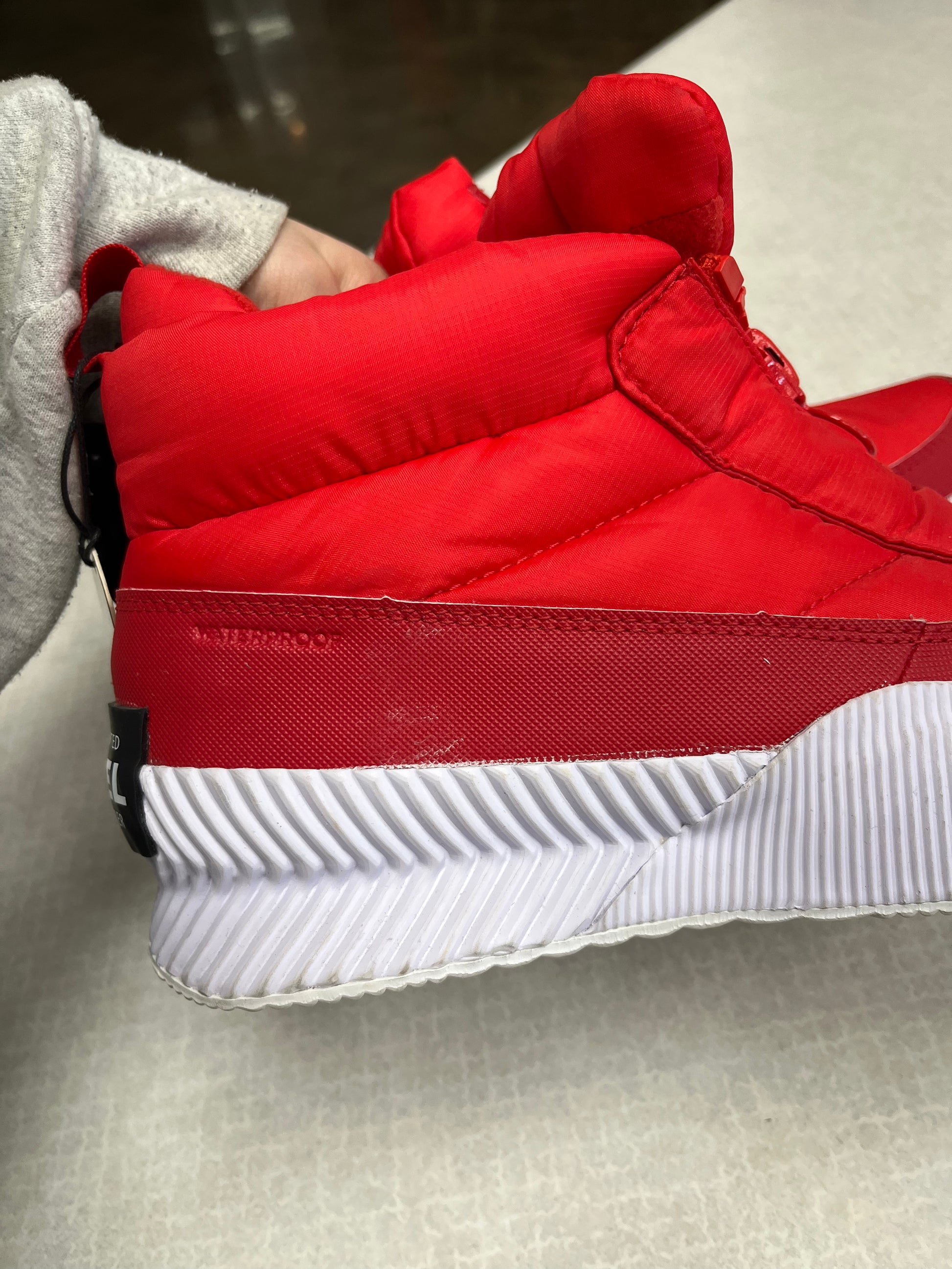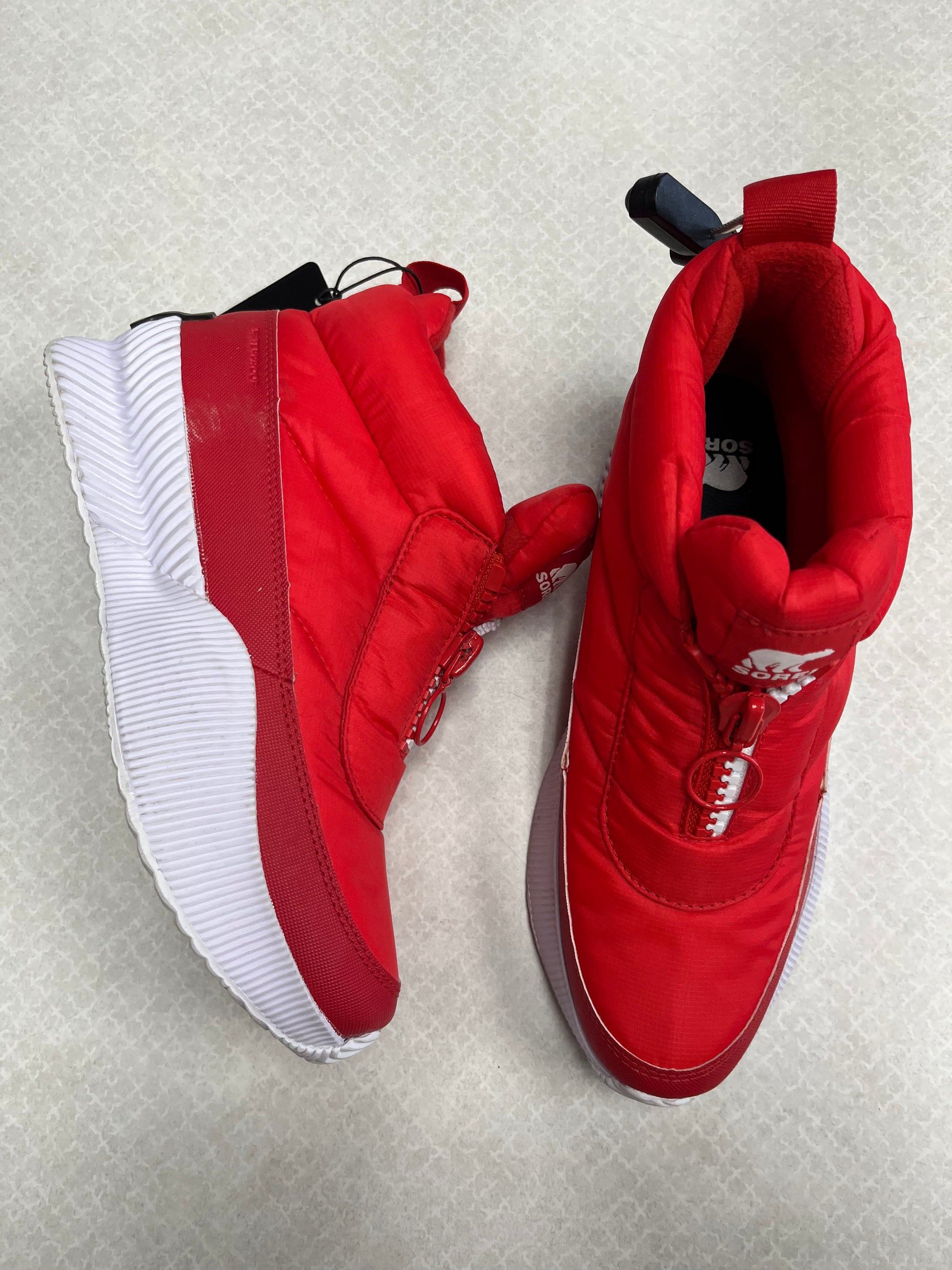 Step out in style with these vibrant red Sorel snow boots in size 8.5. Embrace winter fashion!