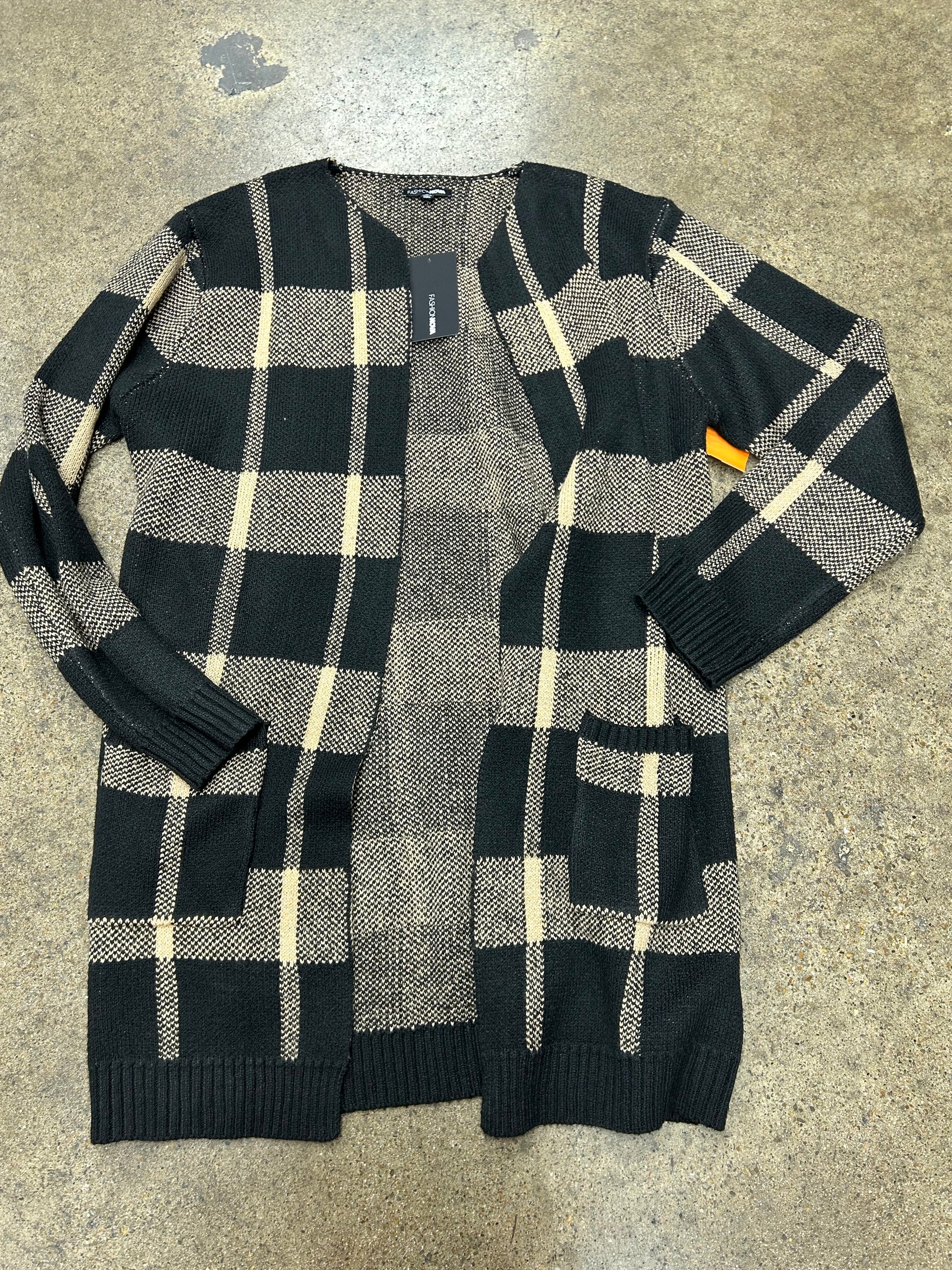 Sweater Cardigan By Fashion Nova In Black & Tan, Size:L